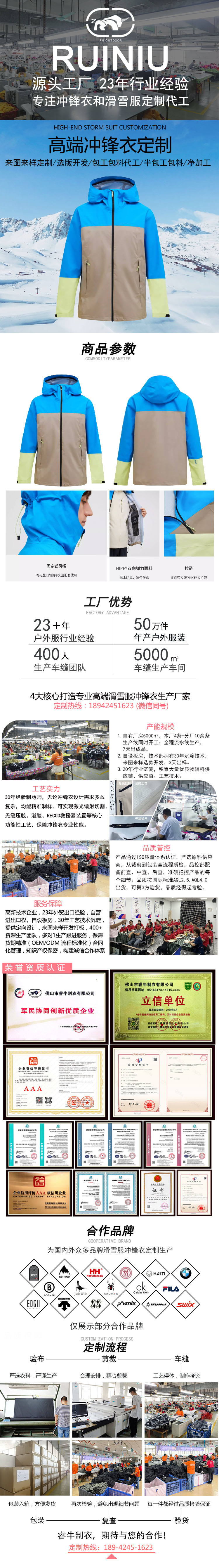 持續23年專注沖鋒衣、滑雪服定制加工廠家